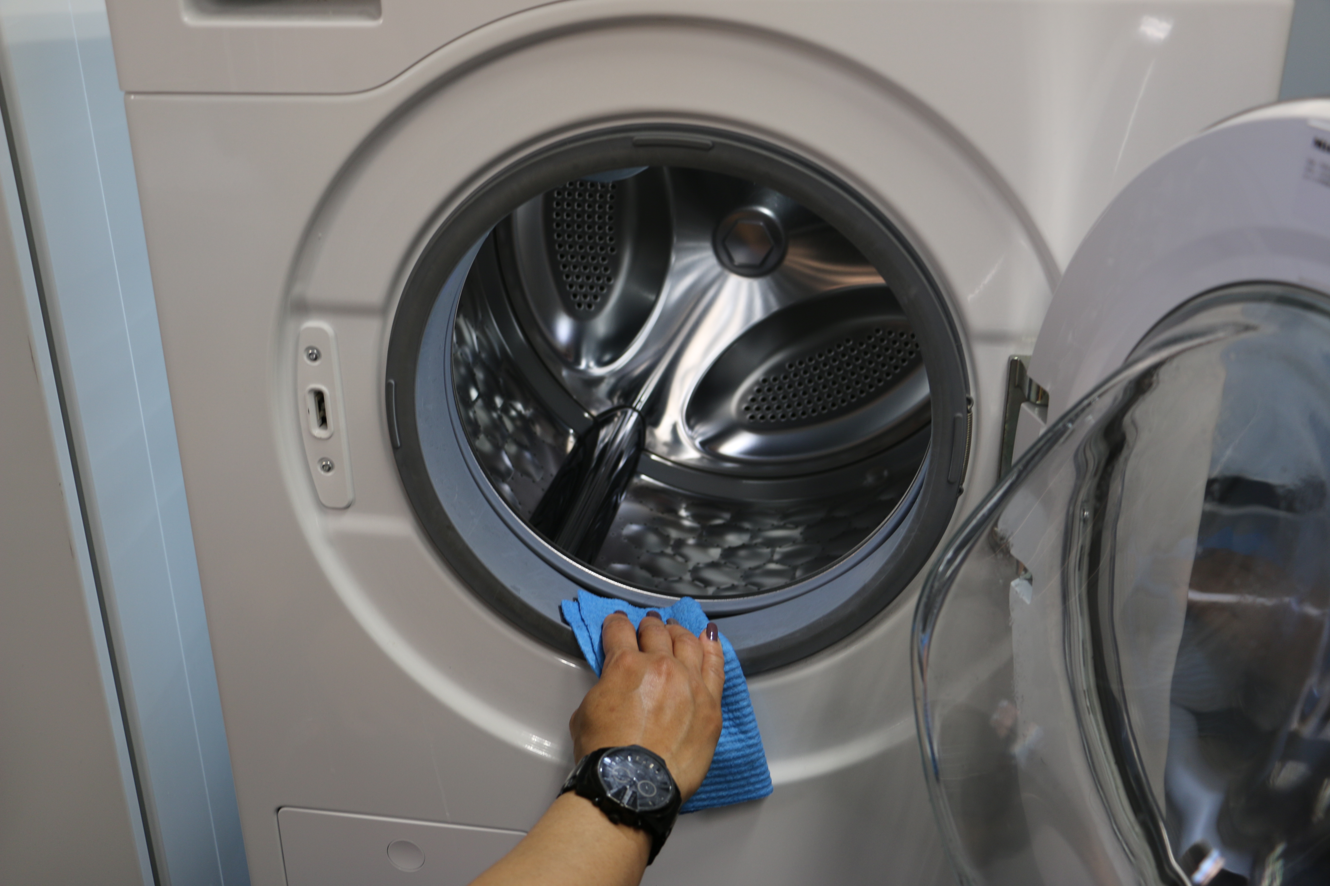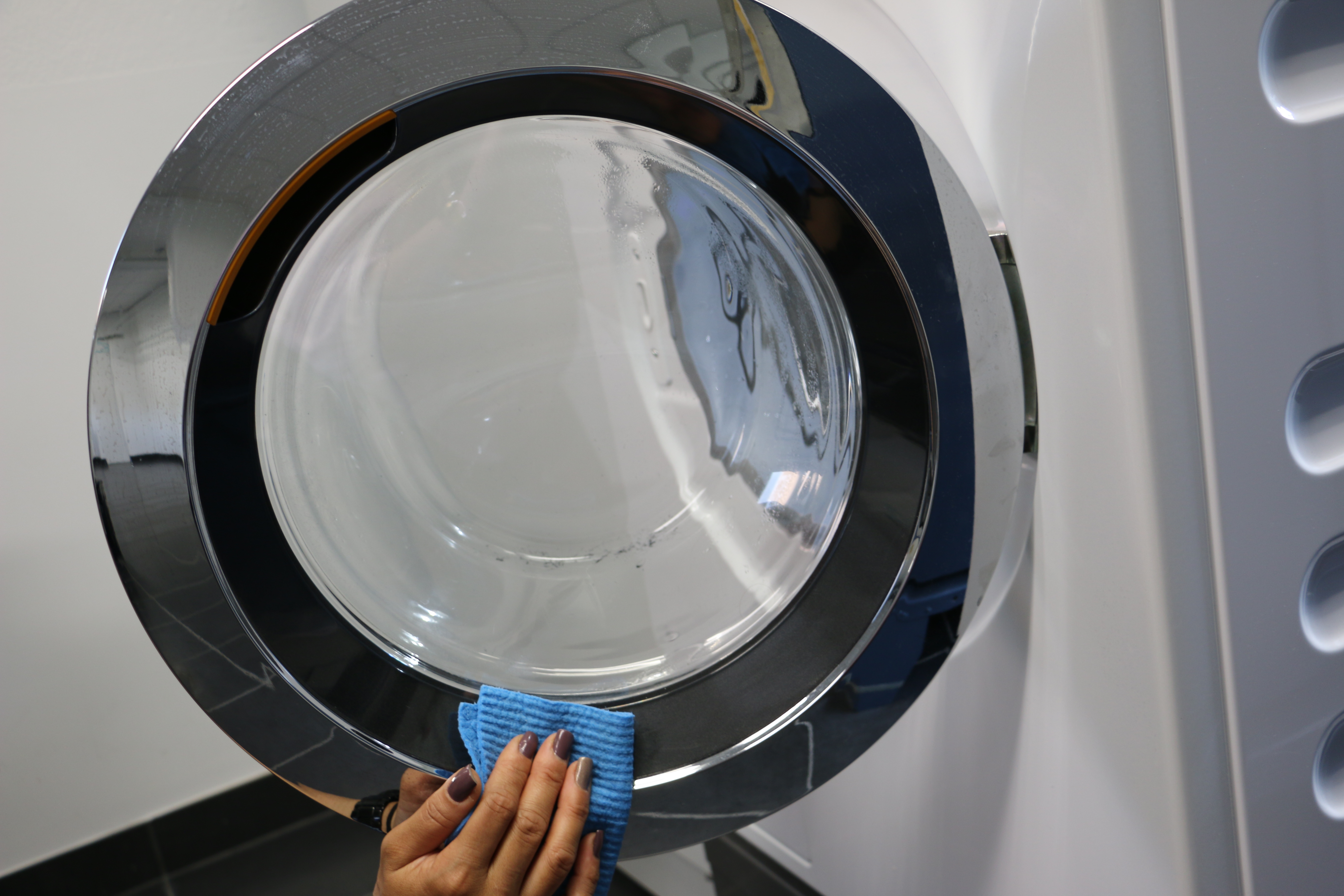Torka av tvättmaskinen och rengör tvättmedelsfacken.